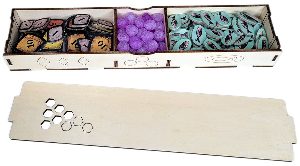 - 1 Boite pour les Ressources (Tuiles poissons, Pieces d'or et Gemmes de Mana)