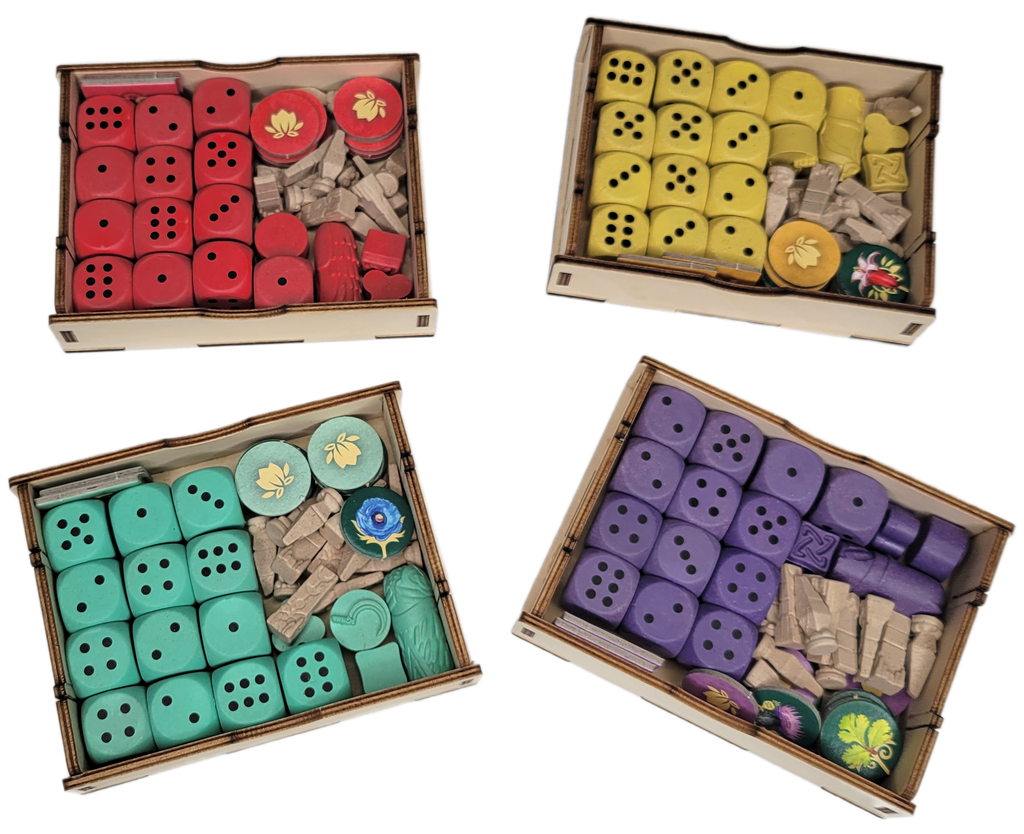 - 4 Boites joueurs pour rangement éléments joueur (Dés, Menhirs, Stèle,,...)